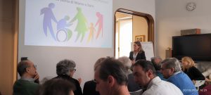 Al termine del incontro c’è stato un lavoro collettivo di scambio di ruoli tra persone con afasia e i care-giver, per confrontarsi su diverse strategie di comportamento.