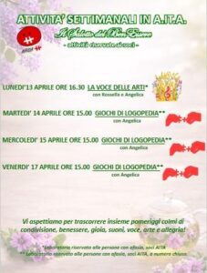ATTIVITA’ SETTIMANALI: dal 13 aprile al 17 aprile 2026