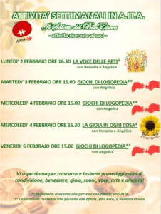 ATTIVITA’ SETTIMANALI: dal 16 febbraio al 20 febbraio 2026